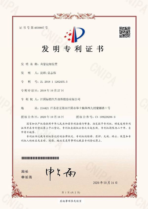 公司研發(fā)的“直管拉細(xì)裝置”喜獲國(guó)家發(fā)明專(zhuān)利。